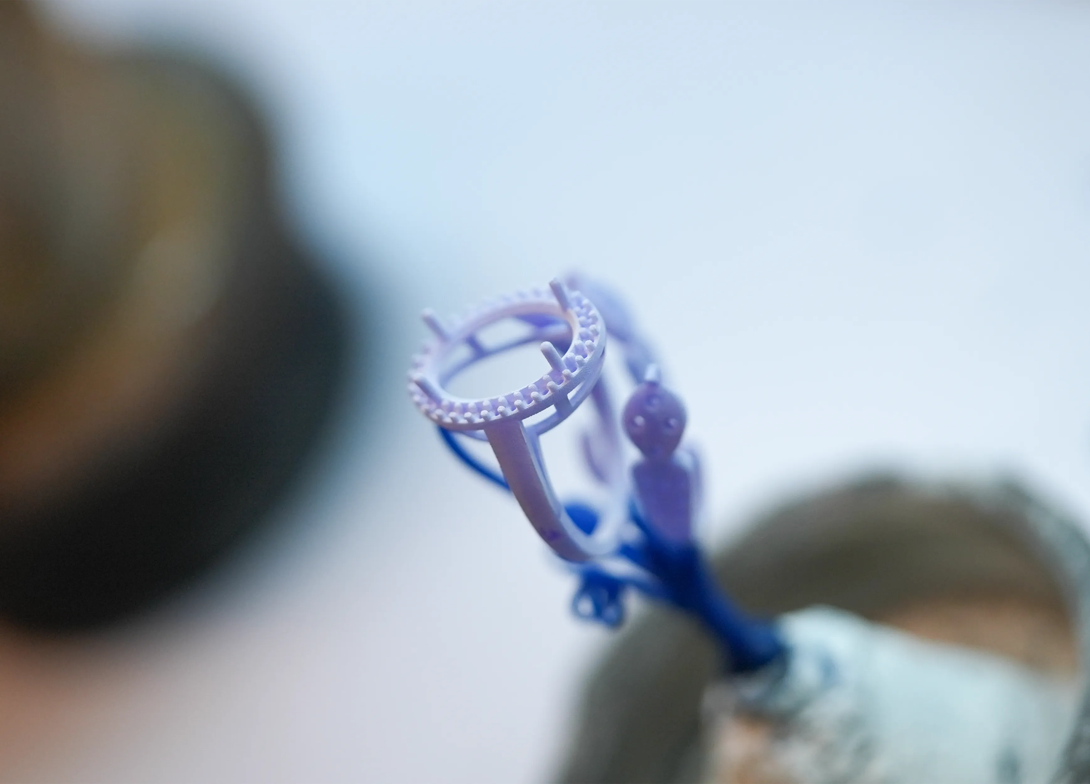 For special pieces, we use high-tech 3-D printers to make precise wax models. These printers are so accurate, they can print details to the nearest 1/100th of a millimeter. Whether it's rings, pendants, or earrings, we can make it happen with amazing detail.