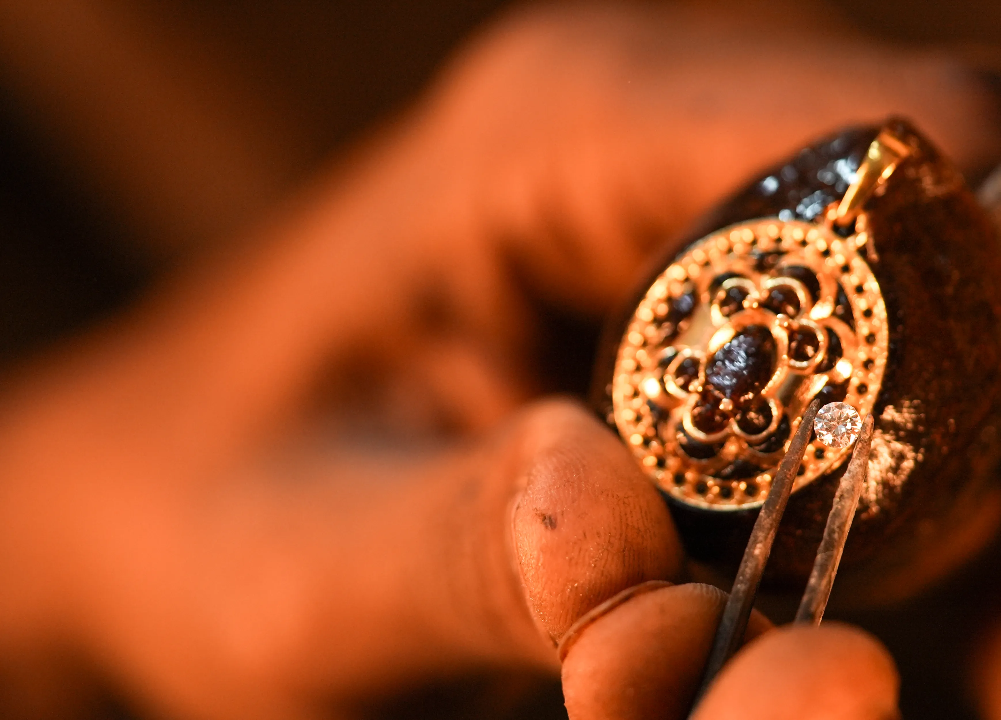 Our skilled jewelers set the diamonds and gems into your jewelry just the way you want. They make sure everything fits perfectly and looks amazing. Then, they polish it up so it shines bright.